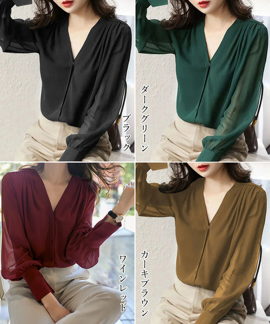 【送料無料】シフォンブラウス 通勤シースルートップス