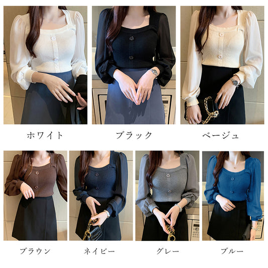 【送料無料】 シャツブラウス 袖切り替え ニットソー
