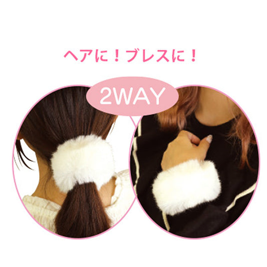 ホワイト/2WAYふわふわファーのパッチンバンド