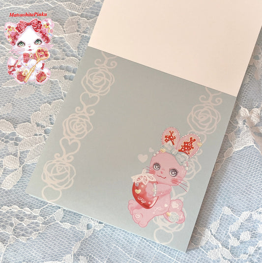 うさぎのホイップちゃんのブロックメモ(透明いちご柄)/イラストレーター松下ぴんく