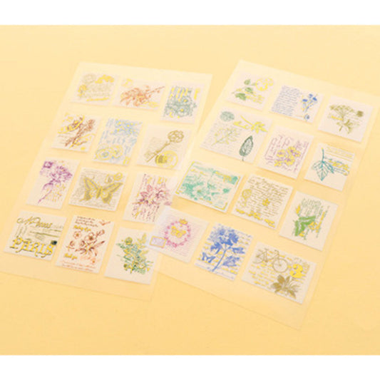 植物&蝶/切手風ゴールド箔押しシール/1枚売り