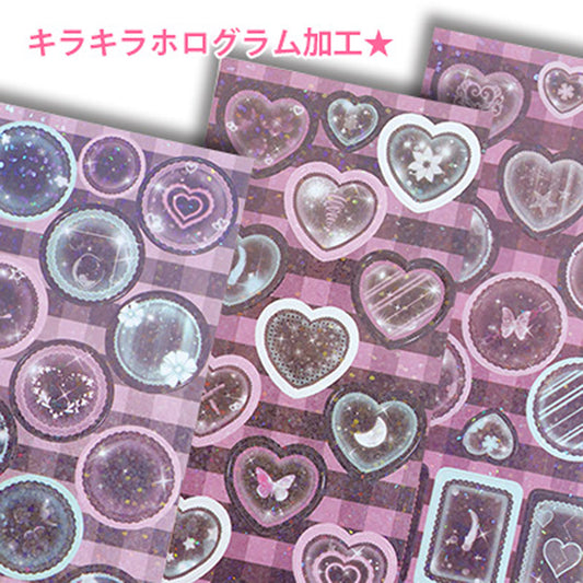 黒&ピンク系/キラキラホログラムシール2枚セット