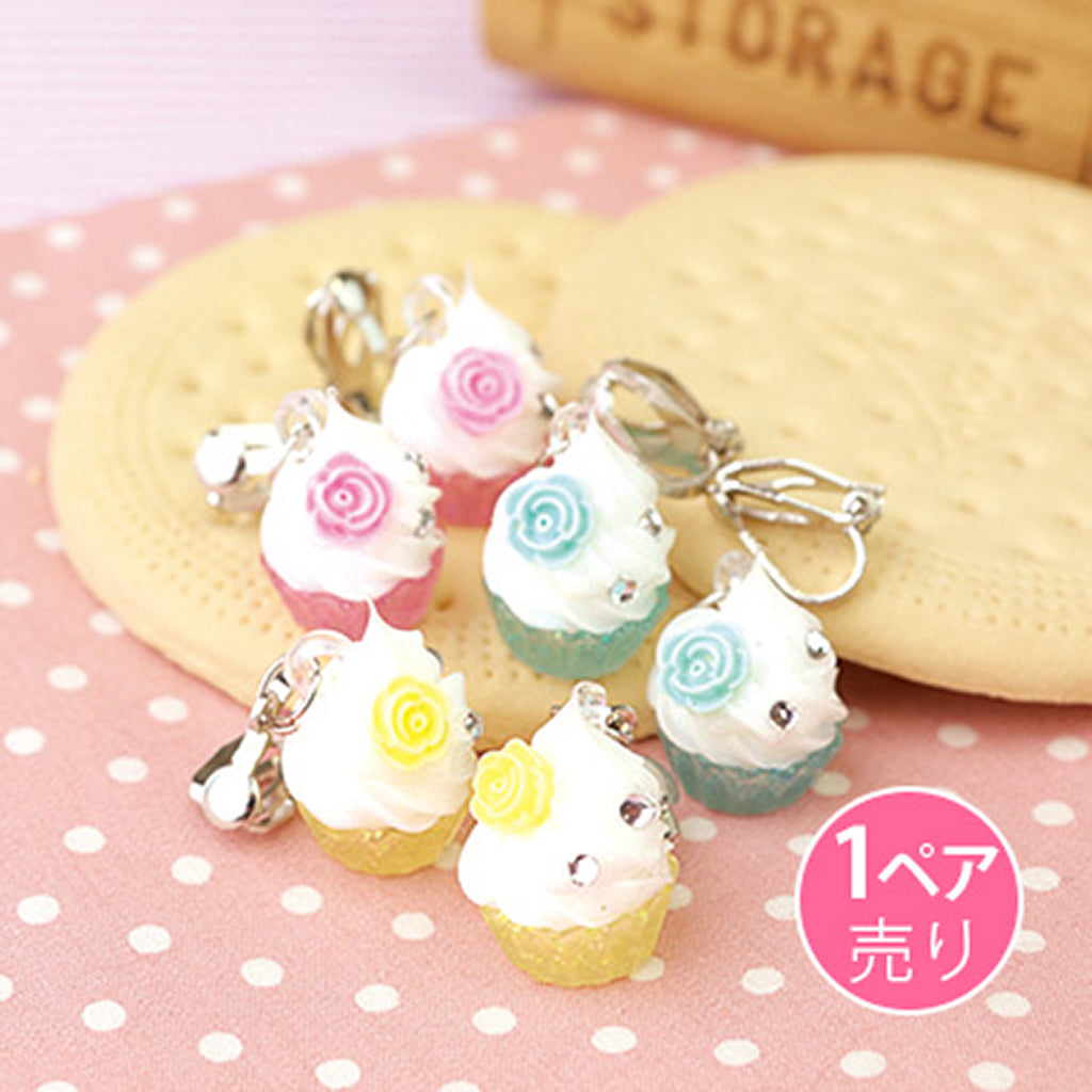 バラ&ストーン付きソフトクリームイヤリング/1ペア売り