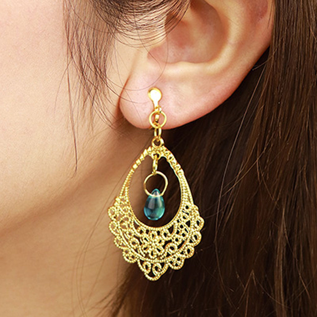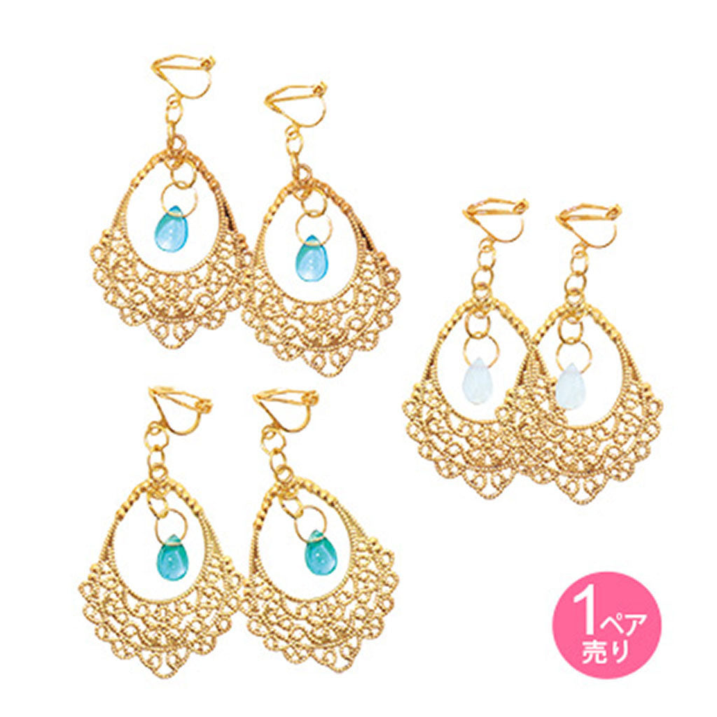 揺れるストーン付き透かしパーツのイヤリング/1ペア売り