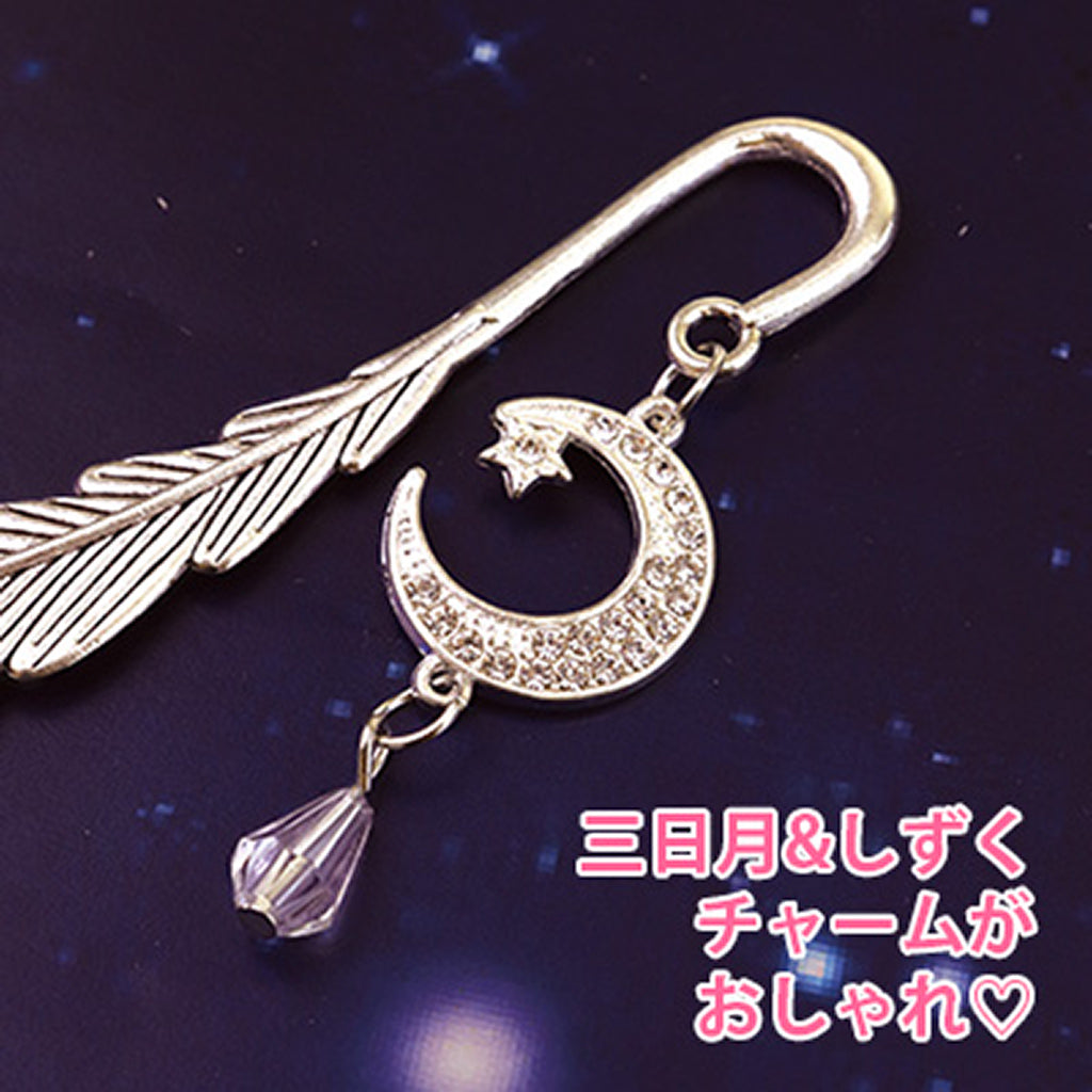 シルバーカラー/三日月&しずくビーズが揺れるしおり