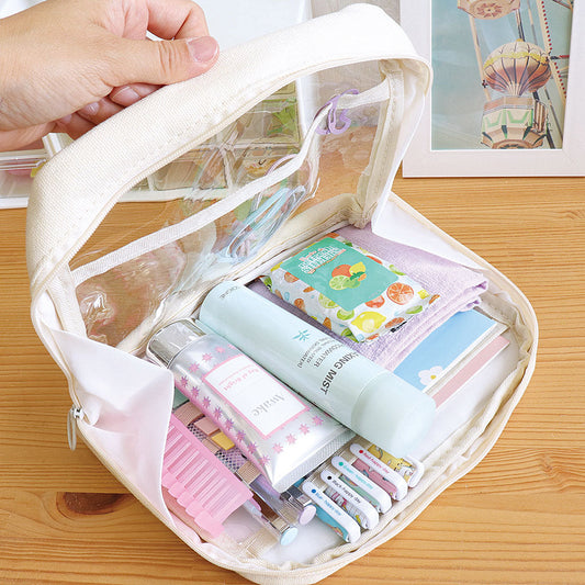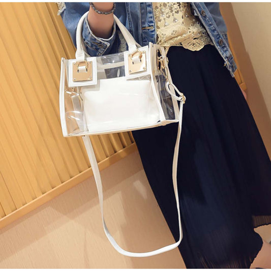 ホワイト/ゆるいお顔のビニール&メッシュトートバッグ