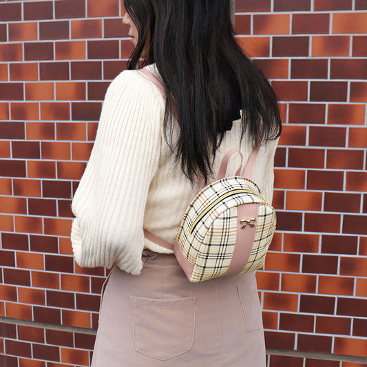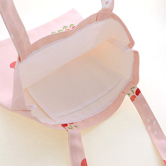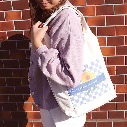 ポケット付きお花&ブロックチェック柄トートバッグ