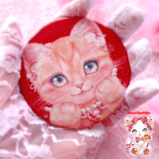 お姫様のたしなみ?鏡をのぞく猫ちゃん?(丸型ミラー)/イラストレーター松下ぴんく