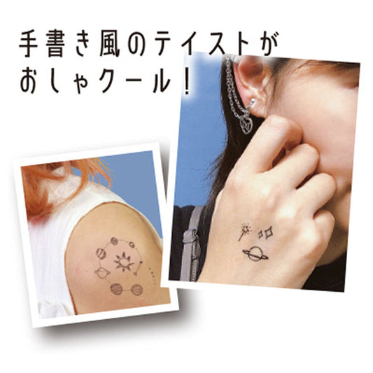 黒/手書き風惑星系イラストのタトゥーシール/1枚売り