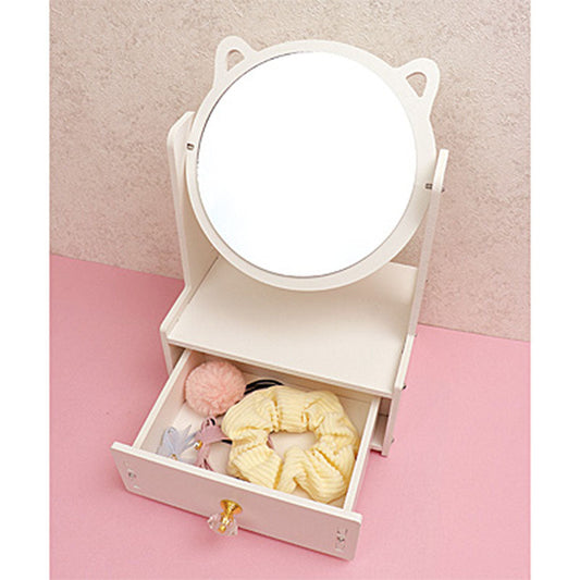 ホワイト/ネコ耳ミラー付き卓上収納ボックス