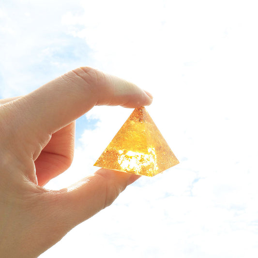 シトリン/ゴールドラメ&パワーストーン入りピラミッド型オブジェ/1個売り