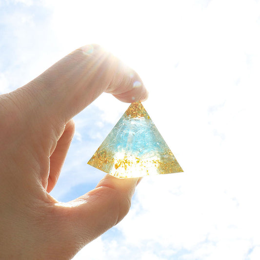 アクアマリン/ゴールドラメ&パワーストーン入りピラミッド型オブジェ/1個売り