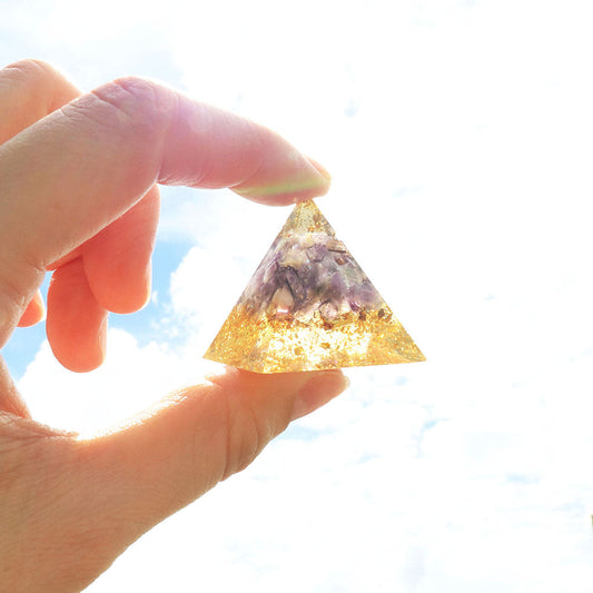 アメシスト/ゴールドラメ&パワーストーン入りピラミッド型オブジェ/1個売り