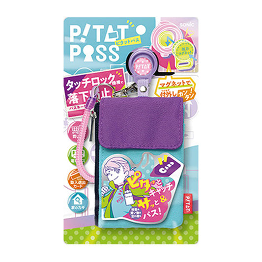 ライトブルー/ピタットパス/スパイラルキーチェーン付きカードケース