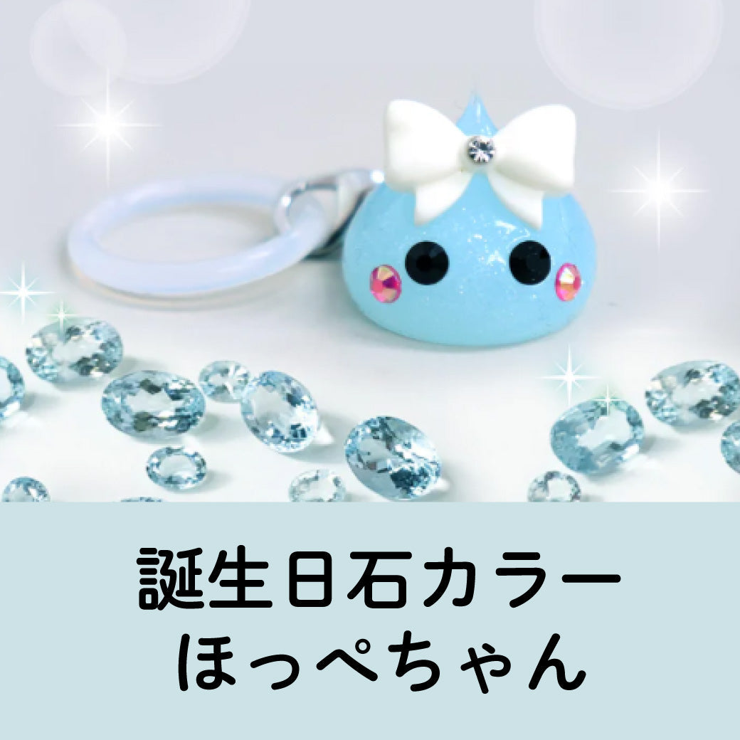 水色ラメ/3月生まれのアクアマリンほっぺちゃんめじるしチャーム/誕生日石カラー