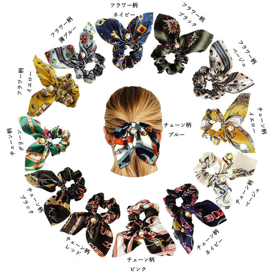 【送料無料】スカーフ シュシュ ヘアゴム 蝶結び リボン ヘアアクセサリー