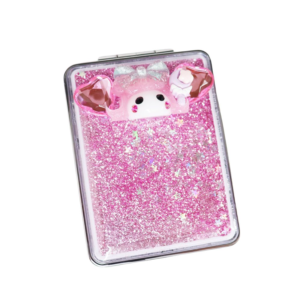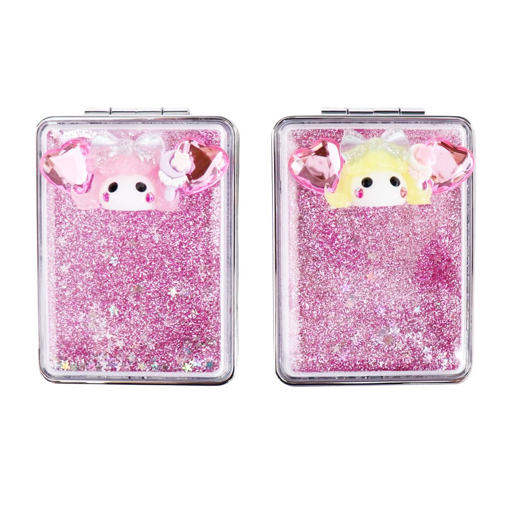 キラキララメが散りばめられたミラー★携帯しやすいコンパクトサイズで、等倍鏡と拡大鏡がセットにとっても便利♪