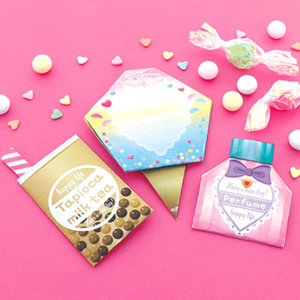 順番通りに線にそって折るだけ♪レインボーわたあめやタピオカなど!人気の折り紙カットメモの新作が流行モチーフで登場★