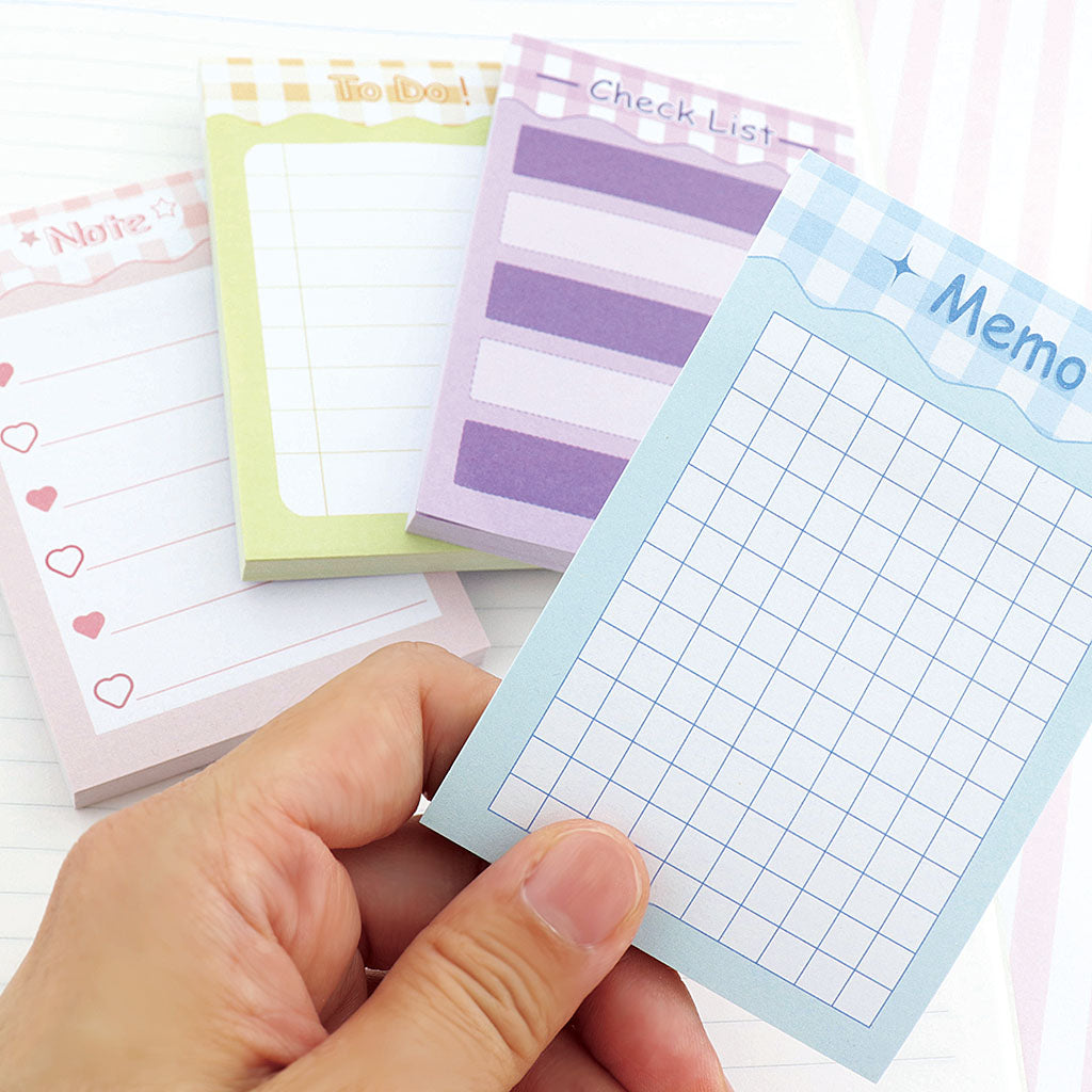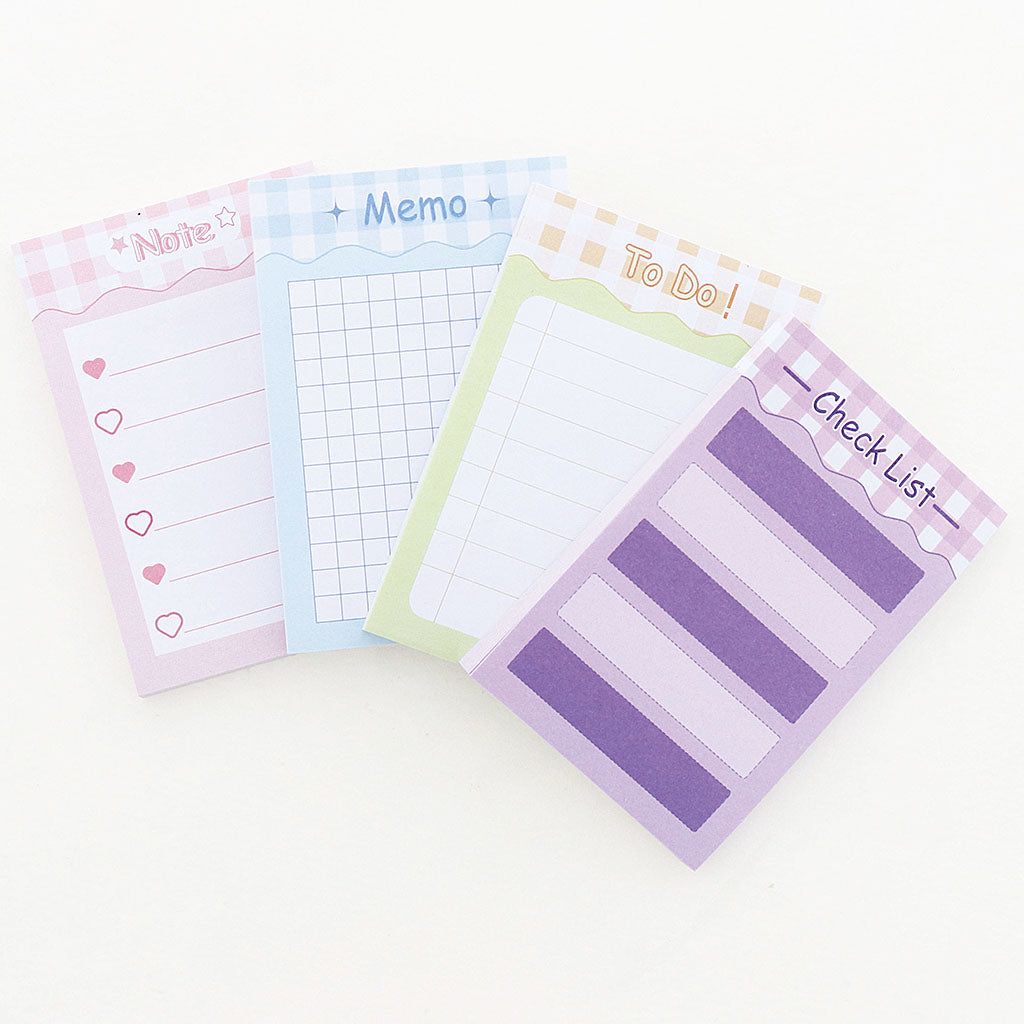 パステルカラー&ギンガムチェック/英字ロゴ入りはってはがせるメモ/1個売り