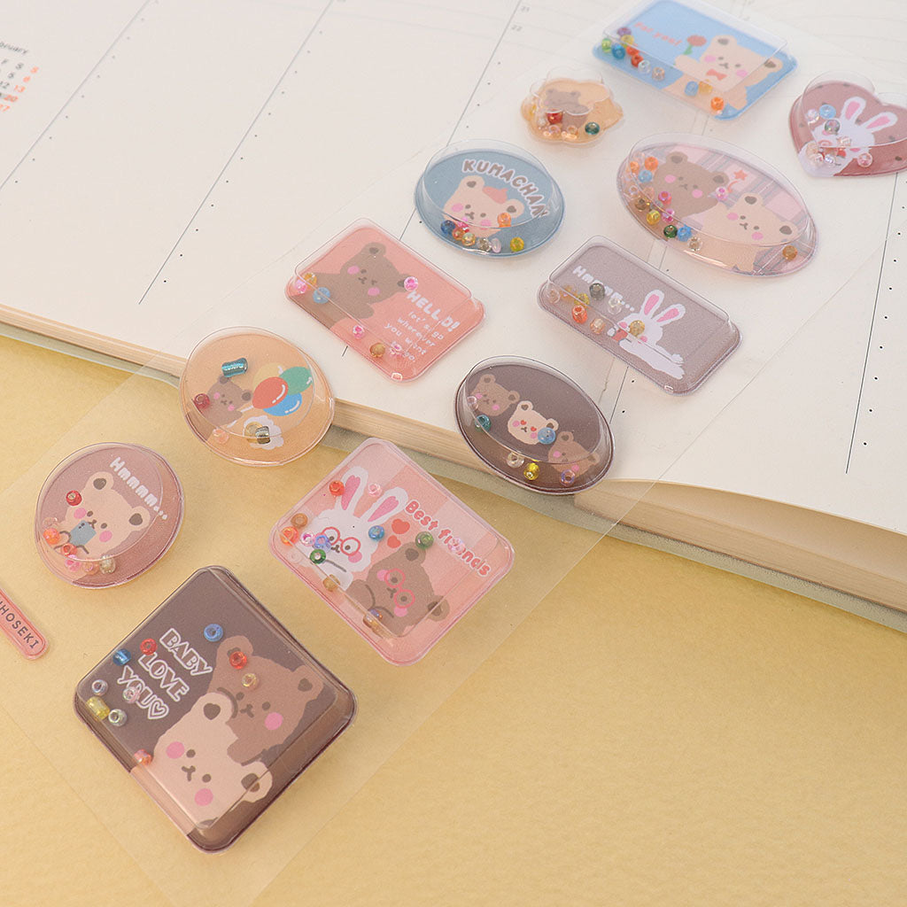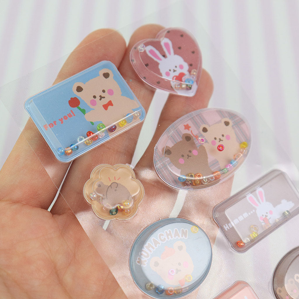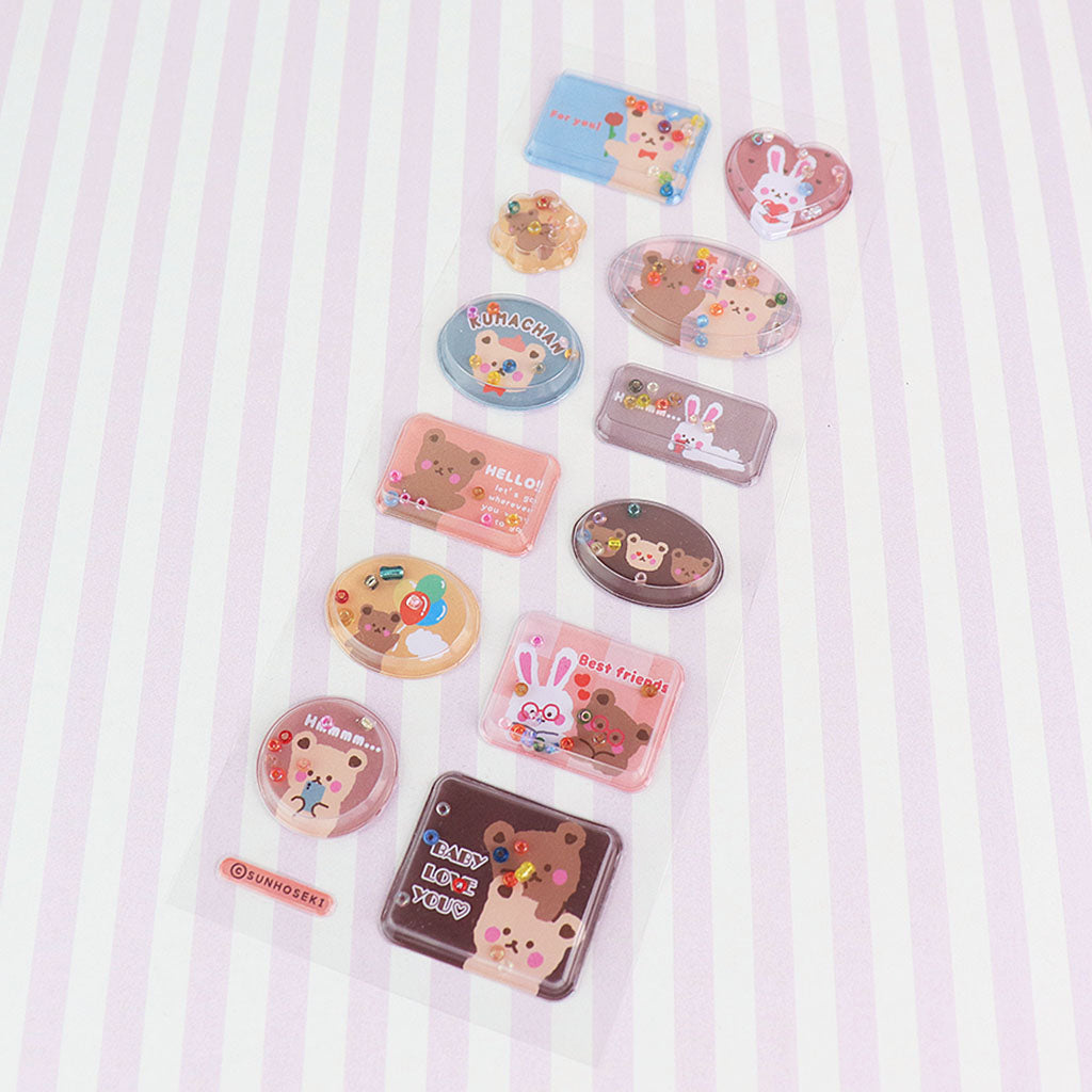 くまちゃん&うさちゃん柄ビーズ入り立体シール
