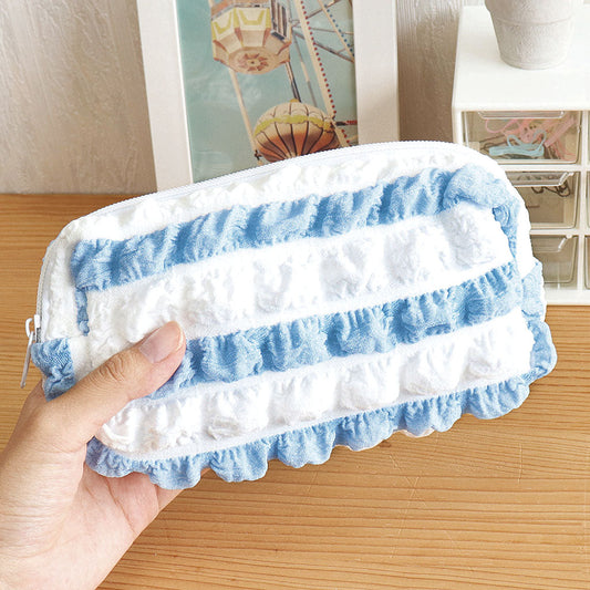 水色ボーダー/ポコポコマルチポーチ