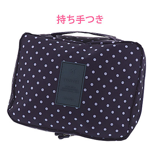 ネイビー/ドット柄トラベルポーチ