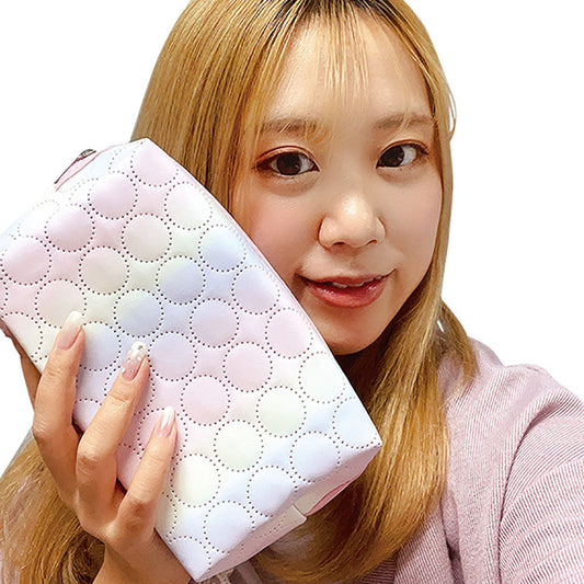 ピンク系グラデ/サークルステッチマルチポーチ