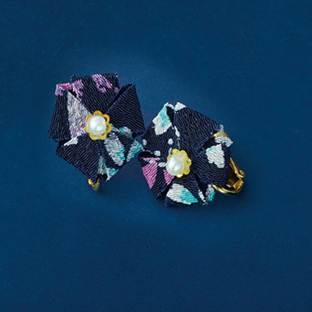 ネイビー/ちりめんお花風イヤリング