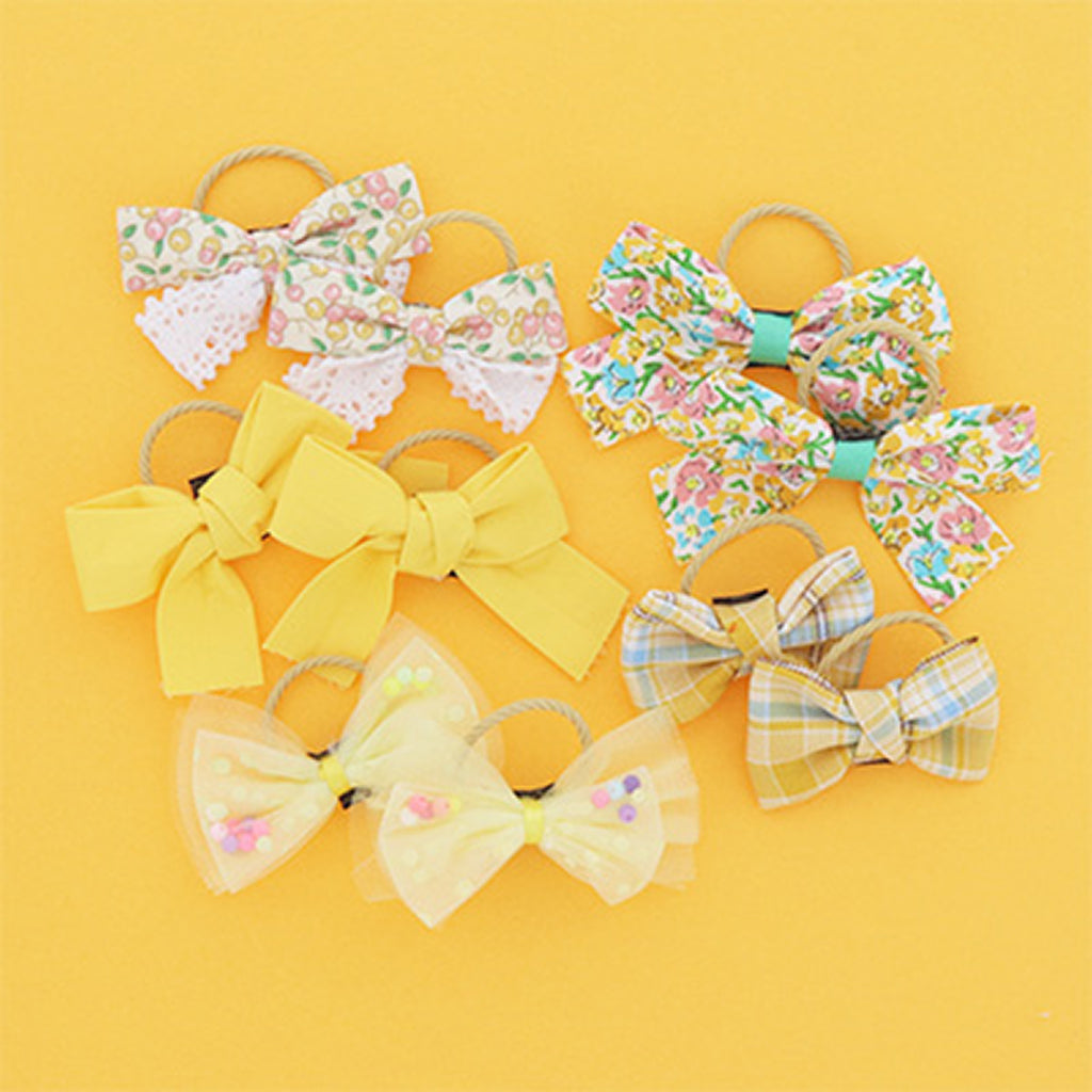 イエロー系/いろいろリボンヘアゴム/10個セット
