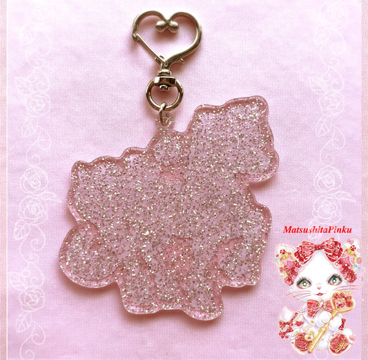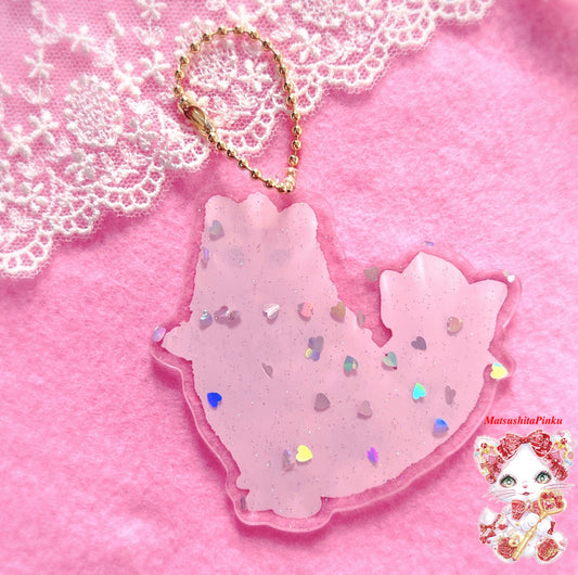 キラキラ夢とラメハートのお姫様のための特別な結びつきギフトねこちゃん( アクリルキーホルダー)/イラストレーター松下ぴんく