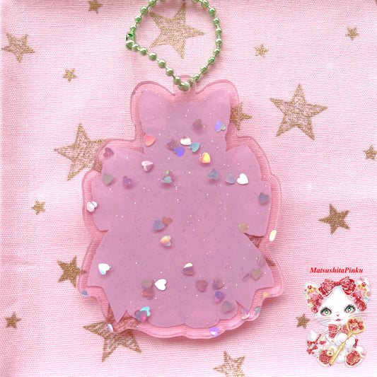 キラキラ夢とラメいっぱいお姫様のための特別なハートのお守りバレリーナ猫(アクリルキーホルダー)/イラストレーター松下ぴんく