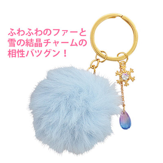 雪の結晶&しずくチャーム付きファー風キーホルダー/1個売り