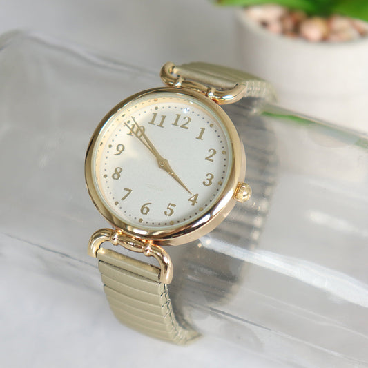 ベージュ/じゃばらバンドらくらく高見え腕時計