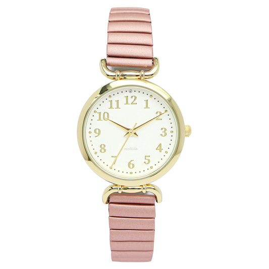 ピンク/じゃばらバンドらくらく高見え腕時計
