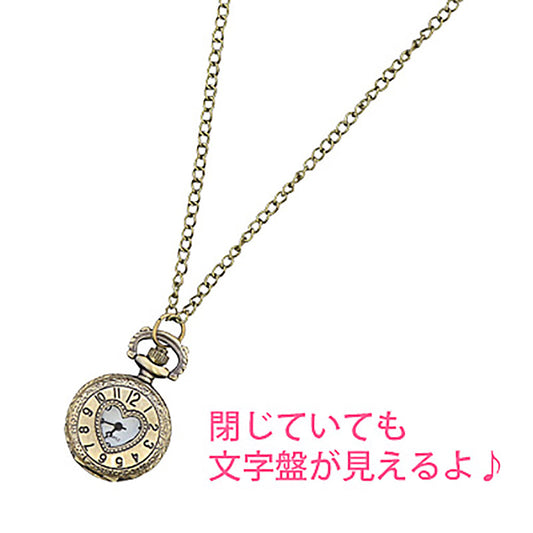 アンティークゴールド/ハート型窓の懐中時計ネックレス