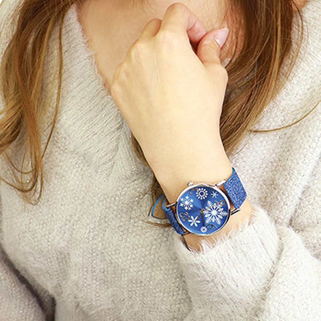青/キラキラグリッターベルトの雪結晶モチーフ腕時計