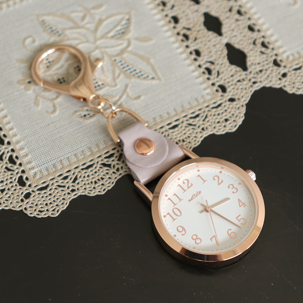 ライトグレー&ピンクゴールド/キーチェーンウォッチ