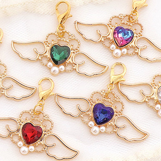 ハートストーン&パール付き天使の羽風ジッパーチャーム/1個売り