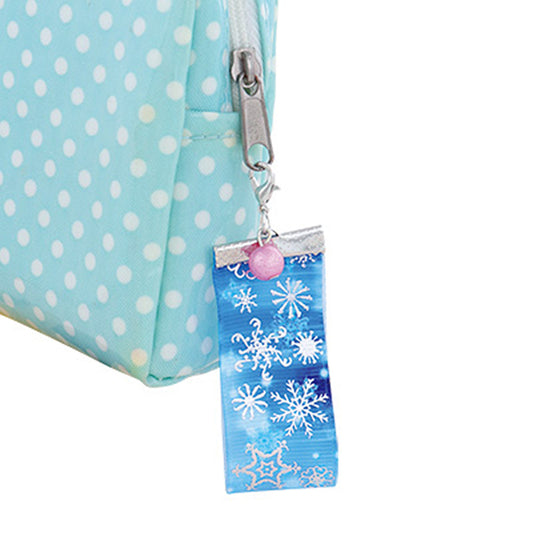 青系/パール付き雪模様グラデーションリボンジッパーチャーム/1個売り