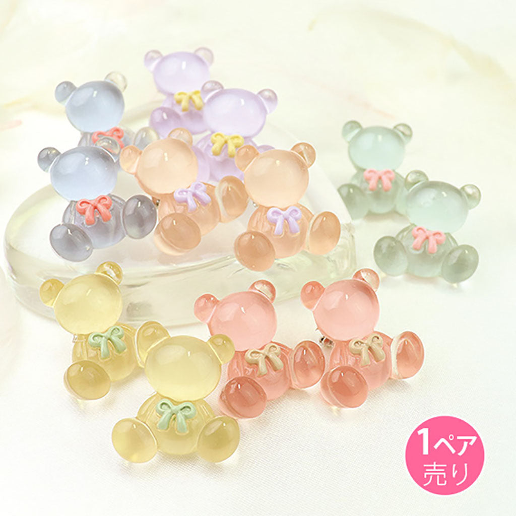 パステルクリア/リボン付きクマのイヤリング/1ペア売り