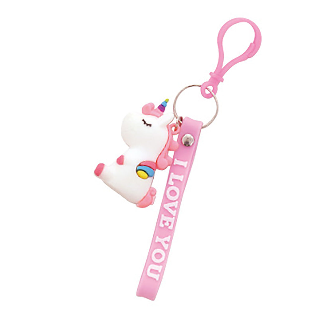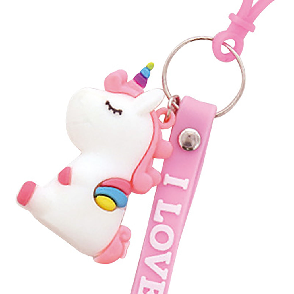 白&ピンク/ユニコーンとラバーチャーム付きキーホルダー