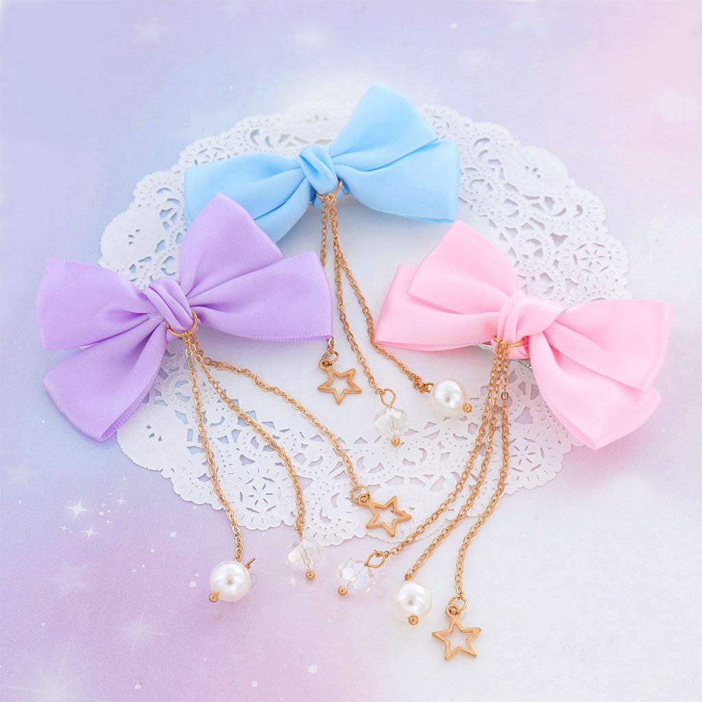 星&パールがゆれるリボンヘアクリップ/1個売り