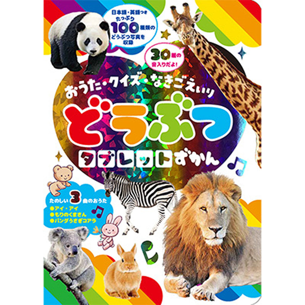さまざな効果音の出るタブレット型モジュールと動物の写真図鑑セットになった音の出る絵本。モジュールでは、図鑑に関連した30種の効果音をはじめ、動物を題材にした歌や、クイズなどが楽しめます。図鑑では、ライオンやパンダ、イルカ、ペンギンなど、100種類のどうぶつを紹介。日本語、英語つき。