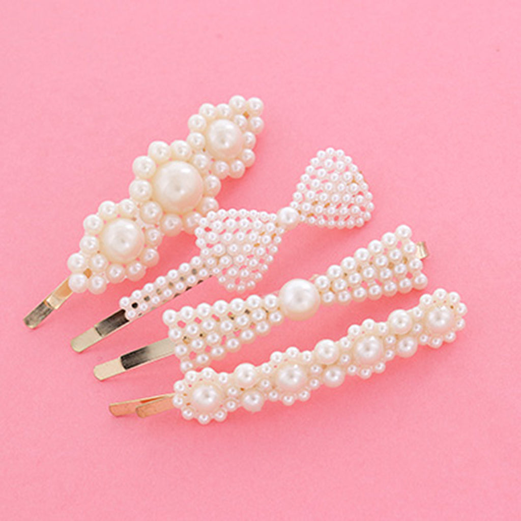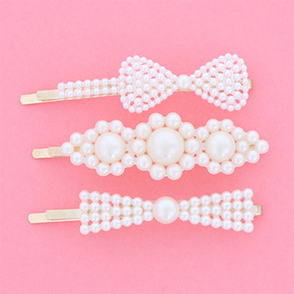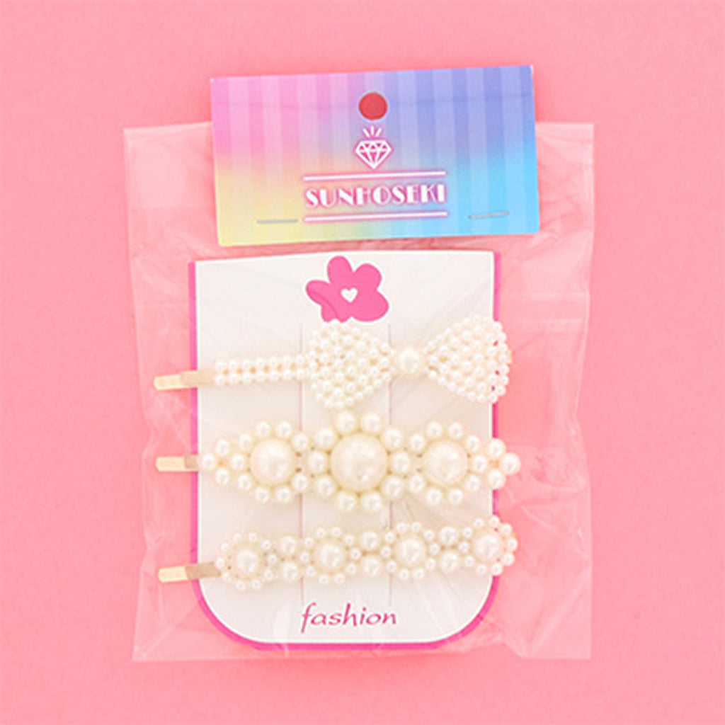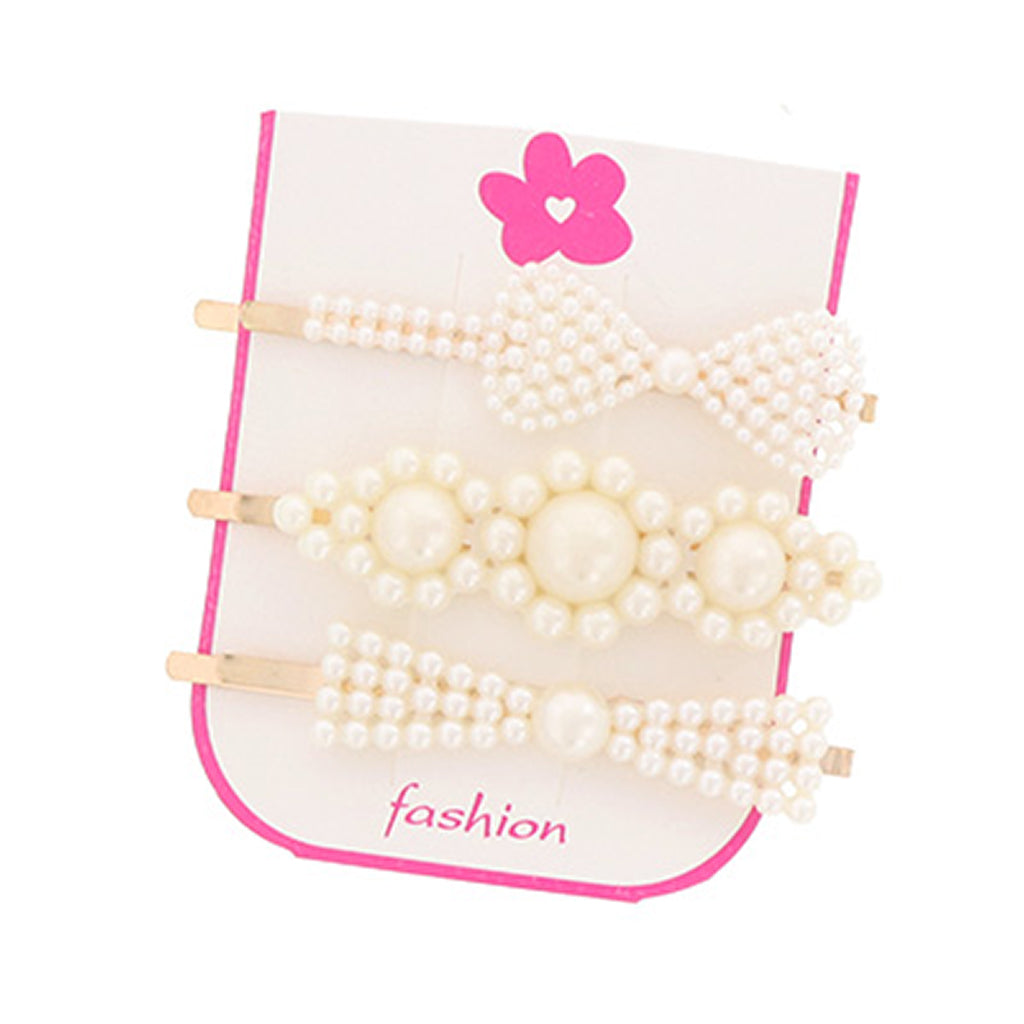ホワイト/パール系リボンMIXヘアピン/3本セット