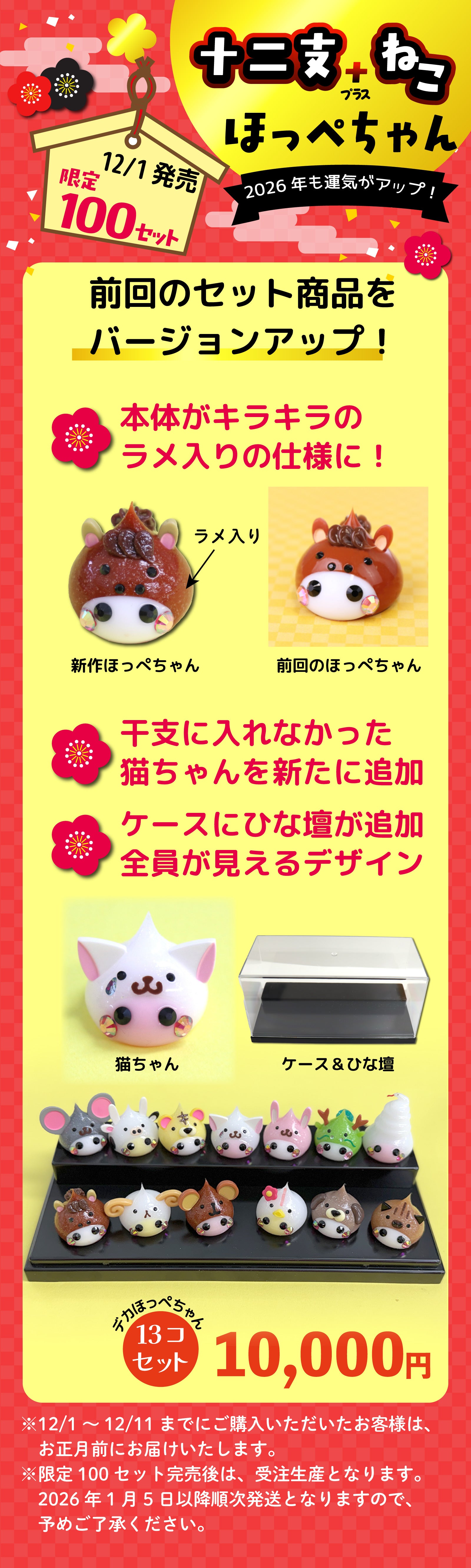 十二支デカほっぺちゃんと猫デカほっぺちゃん(13個セット)
